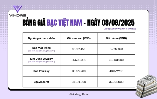 🔍 Tham khảo bảng giá bạc hằng ngày tại: https://vindas.io/thi-truong-bac/